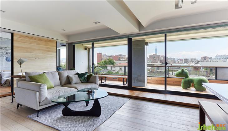 降低的女兒墻,可以讓綠帶入空間,家,因為這廊道串聯(lián)在一起,形成一塊內(nèi)外自由對話的模糊場所