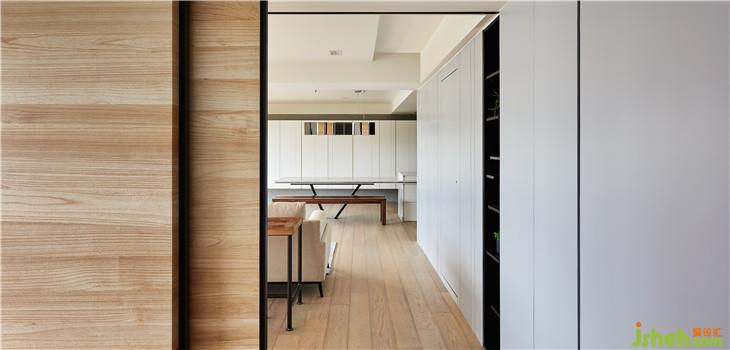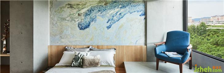 簡潔的廁所空間延續(xù)外面中島的大理石臺面量體感
