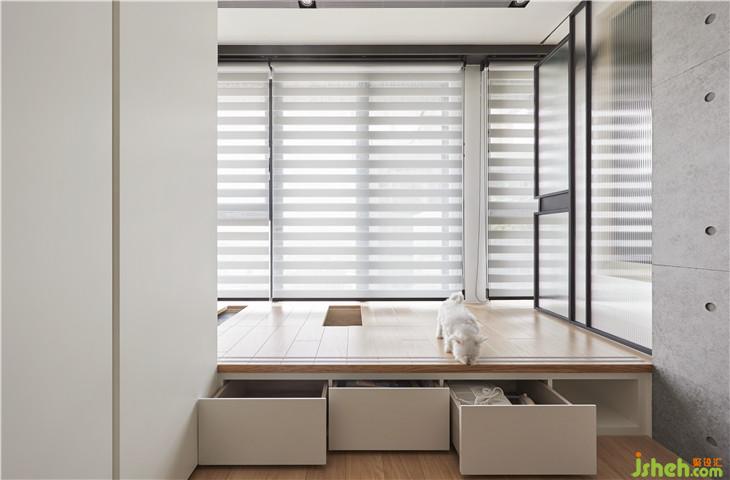 貓屋后方為女主人的工作區(qū),臥榻式的設(shè)計(jì)也可直接變成床鋪使用