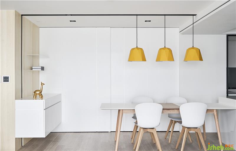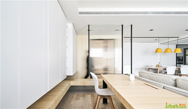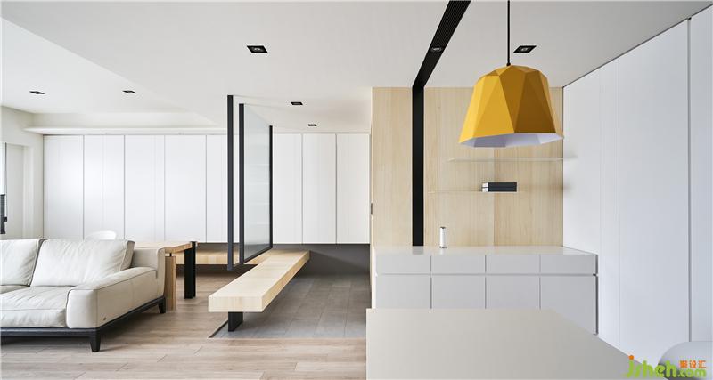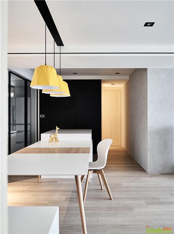 屋主是一位律師,平時工作壓力很大,所以我們決定讓整個空間都是以白色系為主,色彩心理學上,白色象征純潔、干凈、信任,很符合屋主工作的專業(yè)形象,而為了避免太大面積的白色會讓人有開放的疏離感,所以適時地穿插木頭及局部灰、黑色點綴,平衡視覺感受。室內(nèi)設計師