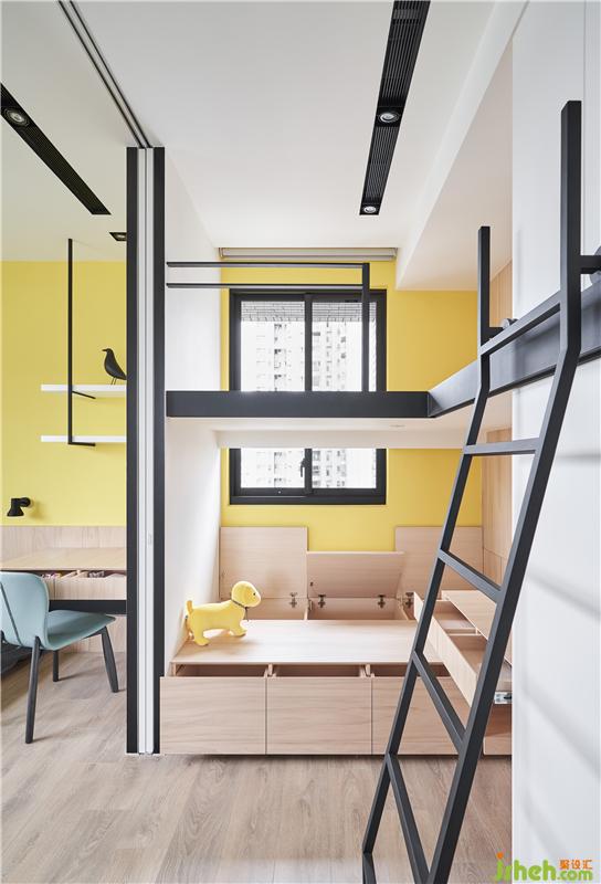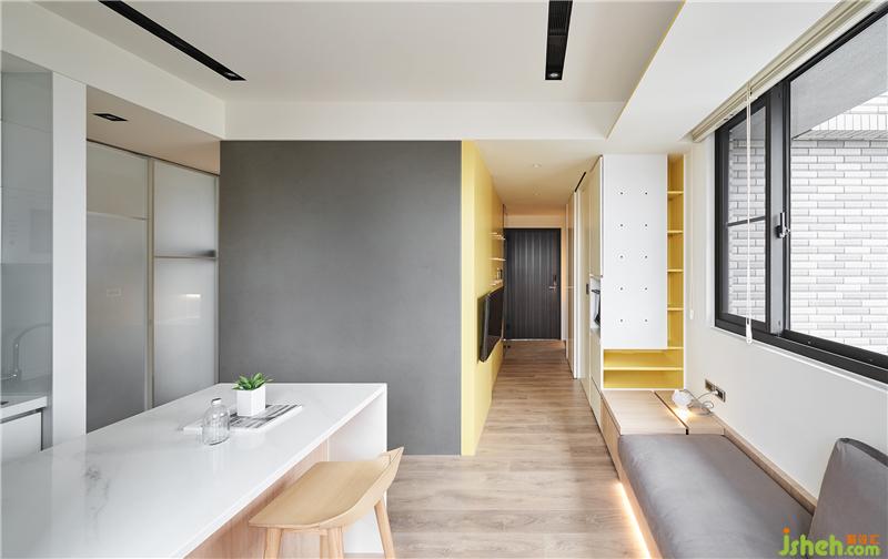 設(shè)計(jì)理念:因空間小,所以想要讓這空間活潑一點(diǎn),選用了黃色為主要配色來(lái)貫穿整個(gè)空間,顏色配色的重點(diǎn),不單單只是整面跳色而已,應(yīng)該讓它放在重點(diǎn),一個(gè)不經(jīng)意的角落,雖然彼此分散又有延續(xù)性,從柜內(nèi)–天花–矮柜–端景墻面,甚至是吊燈和把手都有呼應(yīng)。室內(nèi)設(shè)計(jì)師