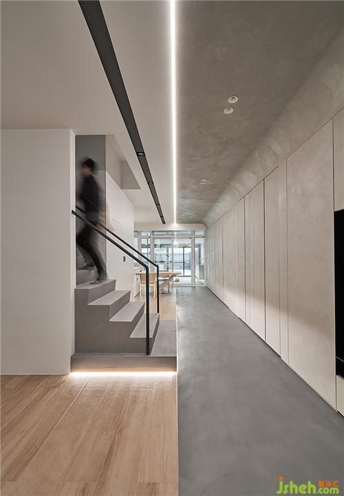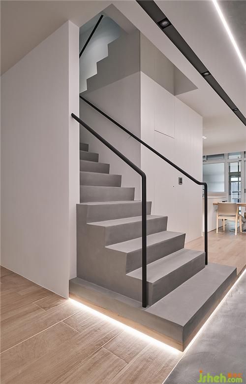 下到一樓,因?yàn)槲覀儗⒕植繝澝娌鸪?,我就把最下面幾階踏階重新跟地板整合,希望樓梯不只是樓梯,也是一個(gè)休息空間。