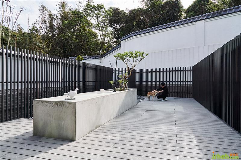 戶外區(qū)原來建商只是貼貼磁磚,我們就建議屋主可以整理一下,地板鋪個塑木地板,圍牆用隔柵修飾,并刻意在中間做了一個隆起的水泥塊體,可以種植栽,也可以變成中島的概念,這裡是狗狗的游戲天地臺灣裝修設(shè)計。