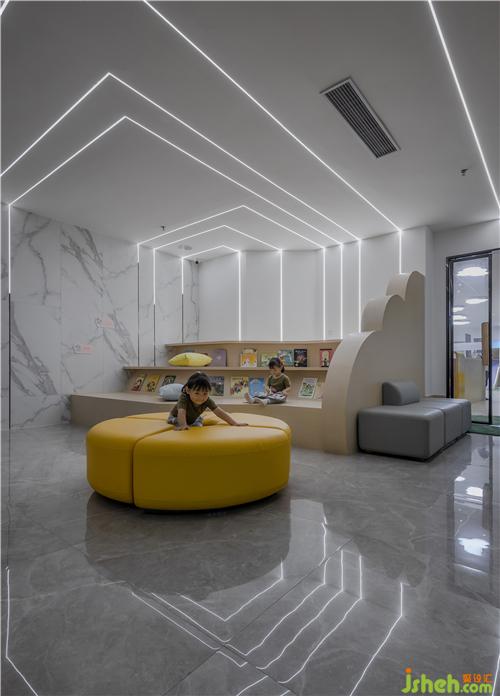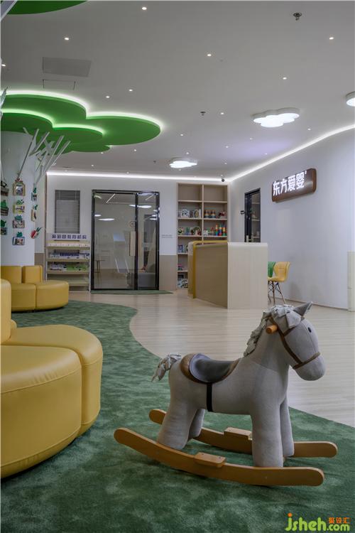 東方愛(ài)嬰是一家專業(yè)的嬰幼兒早教機(jī)構(gòu),機(jī)構(gòu)面向的是童真無(wú)邪孩子。在設(shè)計(jì)師的眼中,學(xué)習(xí)、玩樂(lè)、觀察自然這一過(guò)程對(duì)孩子是十分重要的,故此,設(shè)計(jì)師在設(shè)計(jì)中將其進(jìn)行充分的考慮,目的就是希望給孩子一個(gè)充滿童趣又安全的空間,同時(shí)設(shè)計(jì)師也將空間的作用開(kāi)發(fā)到極致。早教裝修設(shè)計(jì)