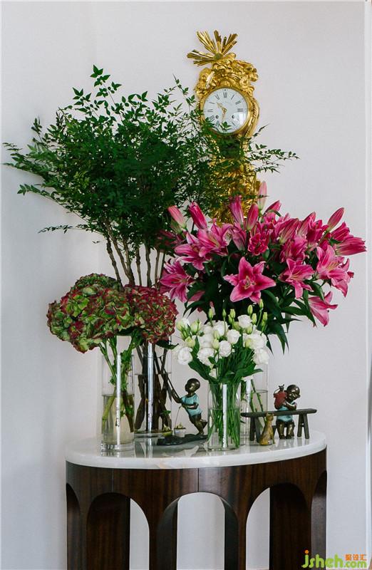 SCD崇尚家的安靜,卻不喜歡家的冰冷,這是所有住宅空間SCD注入的陳設(shè)理念。墻身的白和木地板的棕黃,讓空間溫暖明亮,沒(méi)有任何天花造型和裝飾材料堆砌的空間,極其安靜、素雅、內(nèi)斂,天花那盞上百年歷史的花燈,在極其簡(jiǎn)潔的空間顯襯得更為有力和明艷,百年工藝的美和材質(zhì)的細(xì)節(jié)點(diǎn)綴是空間的支撐力量,是空間美感呈現(xiàn)的基礎(chǔ),映襯邊幾那簇粉紅百合,摻差著綠色的香葉、白色的玫瑰,青紅的繡球,混合著雕塑的童趣感,那似乎拿著粘桿捕蟬、和在木凳邊逗貓戲狗的孩童,充滿(mǎn)記憶深處的情感和共鳴,這是最好的軟裝手法,也是最具溫度的和生活情趣的場(chǎng)景畫(huà)面,SCD作品總是充斥著這樣美好的情愫......