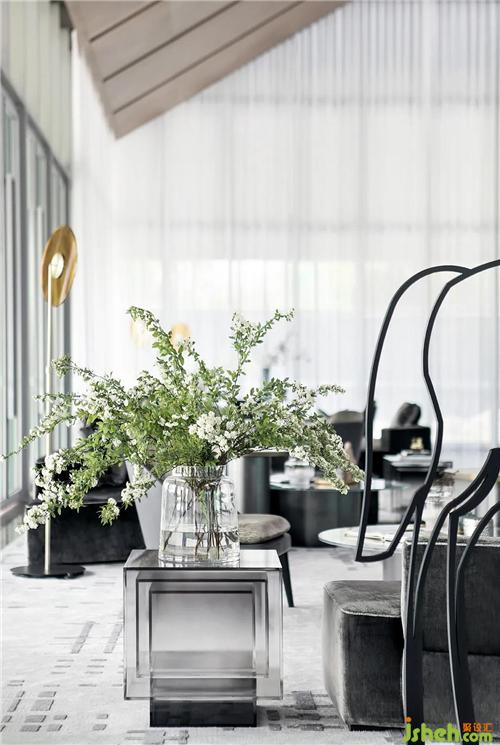 Yunzhan Yunshu, free. The freedom of the cloud is precisely because it has no "self", no normal form, constant in itself. The state of the clouds, as I wish. With carbonized bamboo vases scattered on high and low, insert three or two branches and leaves with flowers, and with hanging decorations of ancient Chinese characters, take the meaning of "bamboo leaves when the wind comes, bamboo leaves no sound when the wind goes". Do as you please, do as you please. Works of art do not stay there quietly, but lead us to feel the atmosphere of life. Space is the boundless invisible, as a designer, may never be able to capture, can not define, because just like the boat in the ferries, even if no one exists, but also can forget the things I lie freely, heaven and earth leisurely.