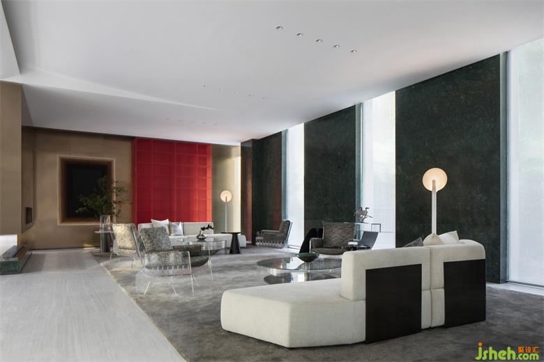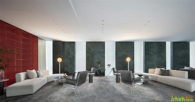 營銷中心設(shè)計(jì)空間打破傳統(tǒng)意義上的平面格局,布局形成視覺上的延伸,由氣韻生動的中國紅點(diǎn)綴,激活整個場域的氛圍感。揚(yáng)州這座歷史文化名城詩意棲居的煙火氣,東方美學(xué)的古今相繼,既承載歷史又接納現(xiàn)代奢雅趣味,經(jīng)由設(shè)計(jì)的推演,空間貫穿著詩學(xué)的想象力,勾勒出一幕幕談笑風(fēng)生。