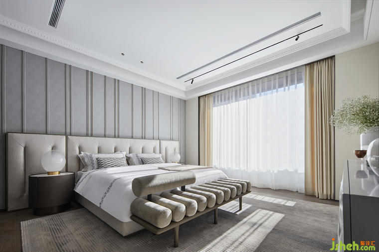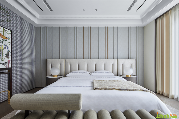 至夜榻枕安眠,拋卻煩擾與紛亂,最能撫慰為生活奔忙的疲憊之軀。在首層臥室,設(shè)計師將千鳥格紋、花鳥、抽象藝術(shù)、浮雕感等多種浪漫元素納入溫潤簡約的空間底色中,休憩之地的審美享受與法式優(yōu)雅感被拉到最大,北京別墅裝飾設(shè)計包容著無限的生活靈感。亭亭綠枝,柔紗浪漫,找到最舒服的姿勢繾綣,偷得浮生半日閑。