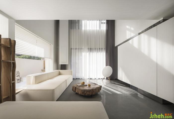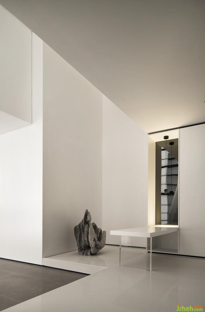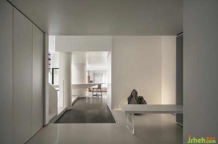 玄關(guān)處自然風(fēng)化的石頭讓“開門見山”的景象回家既視,望向軟膜天花,廣州別墅裝飾整個身心瞬時變得自在從容。全白色的空間骨骼,透過光線折射出非同一般的美學(xué)創(chuàng)造。