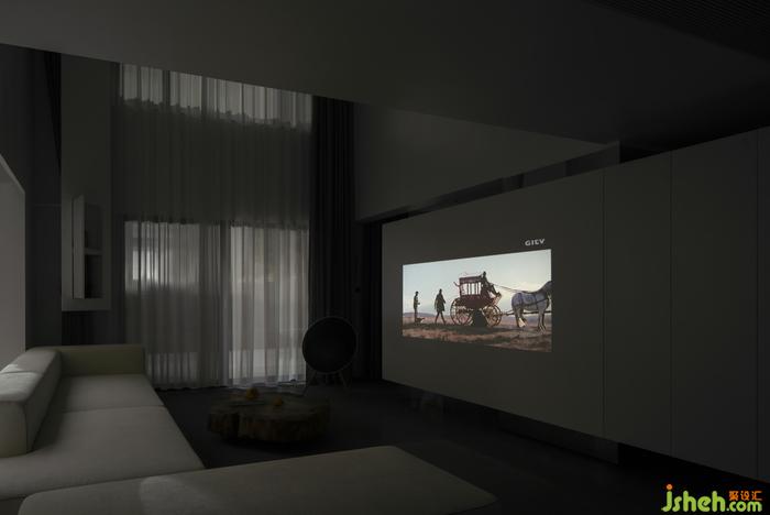 極簡滲透生活哲學(xué),梯級與背面被白橡木木地板包裹,玻璃欄桿讓樓梯變得通透鮮明。12米長的榆木交接而成的大吊燈,把LED硬燈帶內(nèi)嵌在榆木板內(nèi),廣州別墅裝飾巧妙地解決了樓梯的照明,成為一個樓梯間的視覺焦點,以靜制動,最終匯聚在負二地面梯級的一個黑色烤漆圓形玻璃面上,形成一個無法復(fù)制的“高山流水”的瀑布景觀。