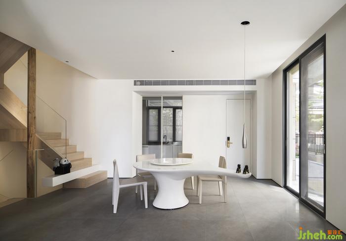 有品位的家,絕不是統(tǒng)一模板。水滴狀的餐桌與天花頂上的水滴吊燈呼應(yīng),讓“一滴水匯聚江?!睖喨惶斐?。
