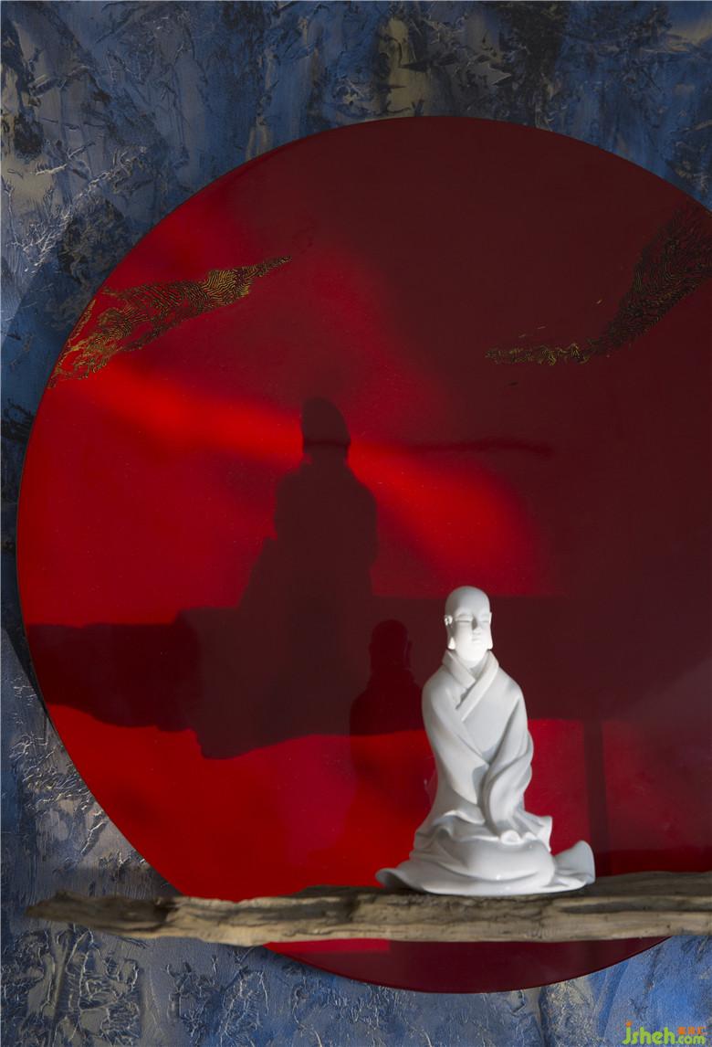 入戶門隨機的白色膩子底像一層層的波浪,同時與入戶玄關(guān)的白色燈帶和景觀沙池形成呼應(yīng),辦公室設(shè)計的黑鈦門框及LOGO背板又和工業(yè)風的黑色不銹鋼樓梯、玻璃棧道、以及玄關(guān)的建筑原墻和地面的灰色麻面大理石磚形成一個整體。