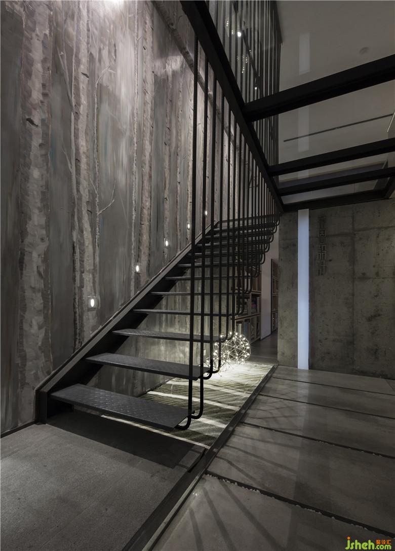 樓梯內(nèi)側(cè)精心繪制的抽象白樺林則讓空間多了一份生活趣味,置身其中猶如身在遼闊平原,可以大口呼吸消除工作的疲憊。