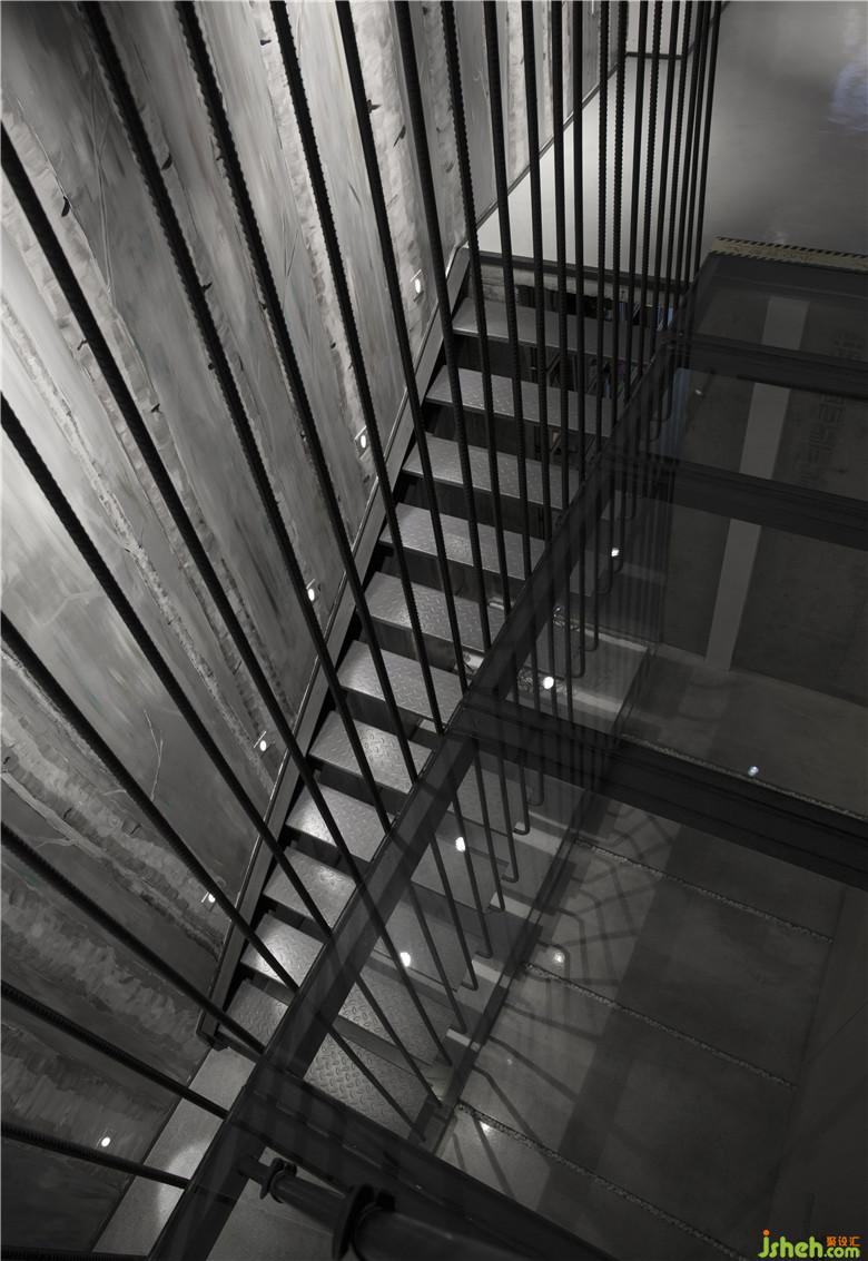 玻璃棧道邊的挑空圍擋內(nèi)側(cè)精心設(shè)計了精細的亞克力燈帶,同外側(cè)的黑鈦嵌條形成對比,辦公室設(shè)計進一步豐富了空間細節(jié),同時達到功能,結(jié)構(gòu)和材料的完整統(tǒng)一。