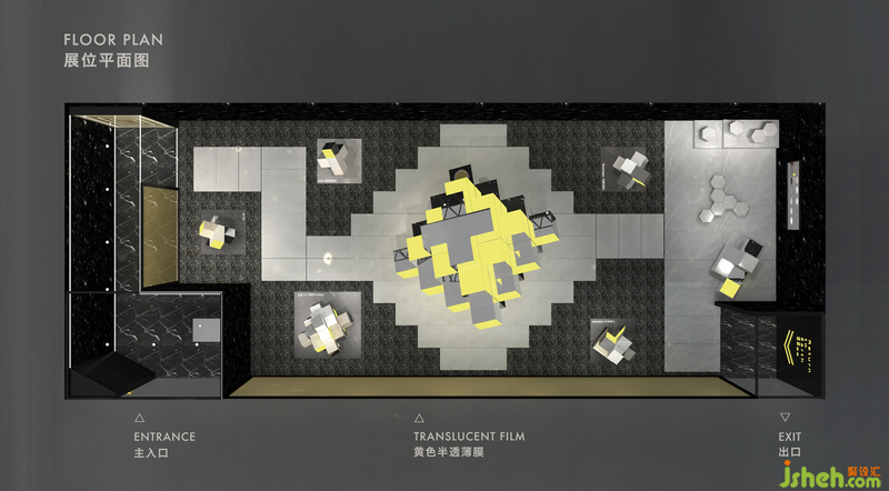 展位三面封閉,正立面僅留下入口與出口,大面積由費羅娜標志黃色的半透薄膜覆蓋,對往來人流起到了恰如其分的“吸睛”與“劇透”作用。