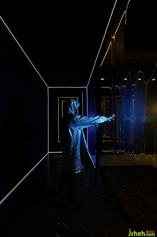 觀者在展位外圍入口處排起隊列,依次摁下登錄按鈕獲取帶有專屬編號的“船票”,隨后即在透著黃色微光的半透明薄膜的引導下,向走道盡頭的展位入口走去。