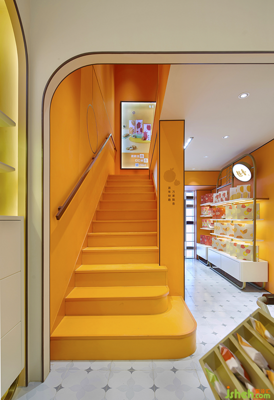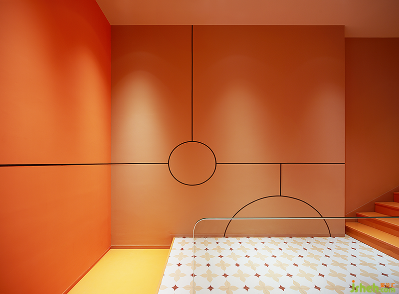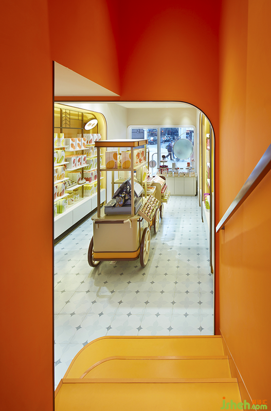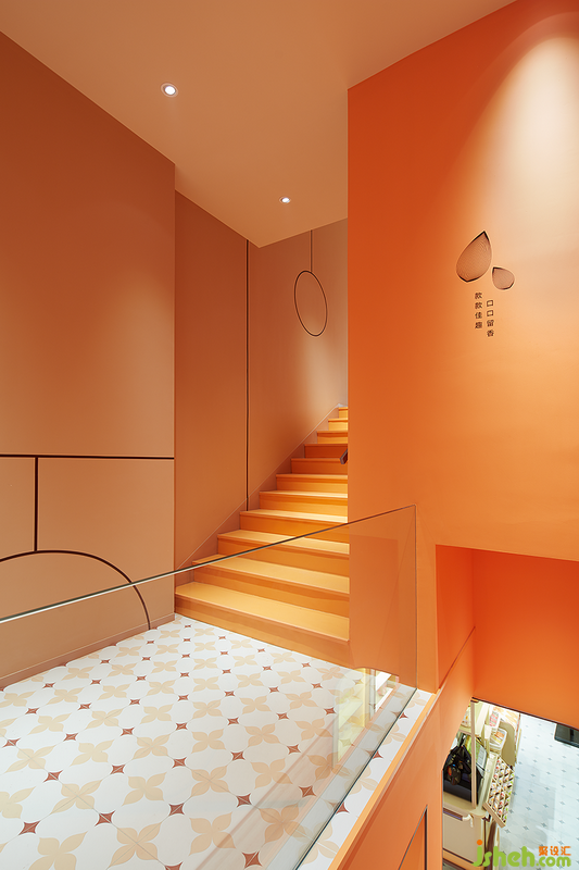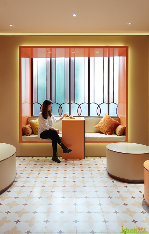 走上樓梯的消費者將進入一個橙色空間,進而來到現(xiàn)代版的西關(guān)小姐房間。小空間中融入傳統(tǒng)元素的細節(jié):定制花窗、窗邊的飄臺、西關(guān)主題的墻面插畫。