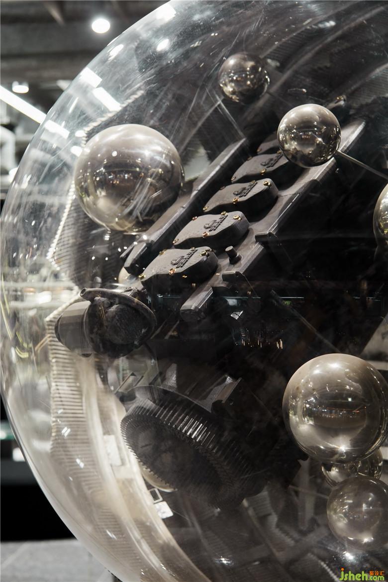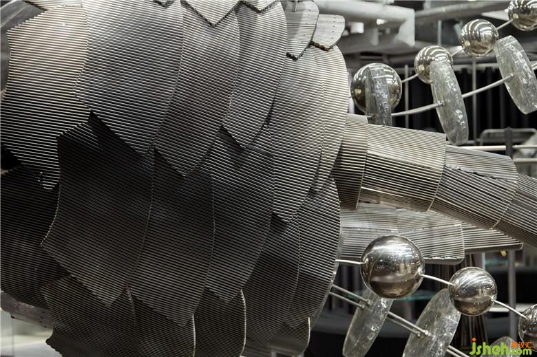 透過(guò)這個(gè)類海洋生物頭部的透明亞克力罩,可以看見(jiàn)它的“驅(qū)動(dòng)”是一臺(tái)報(bào)廢了的發(fā)動(dòng)機(jī),曾經(jīng)屬于某一輛中國(guó)重汽集團(tuán)生產(chǎn)的汽車。