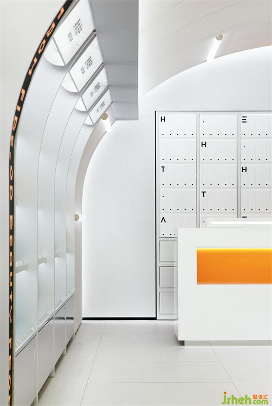 店面門頭處利用鏡面不銹鋼,本身便足夠吸睛的品牌色橙色在鏡面的作用下,更加放大了自身的優(yōu)勢(shì)。