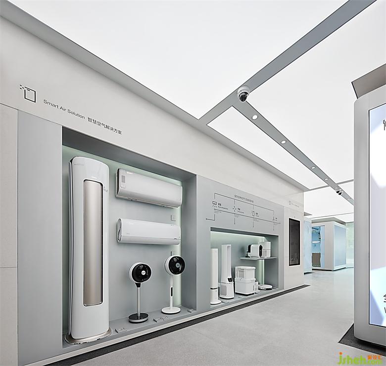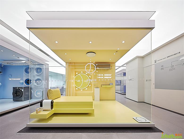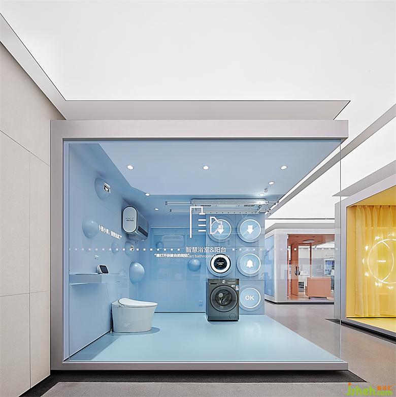 設(shè)計(jì)師沿用美的Cube空間理念,將Cube作為拆解單元模塊,組合成陳列道具展示貨品,在有限的空間面積內(nèi)延展出更多全智能家居場(chǎng)景。