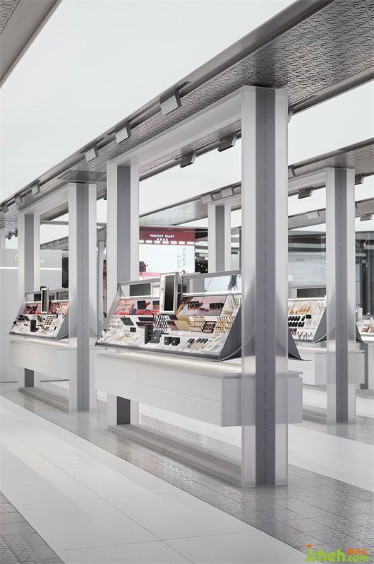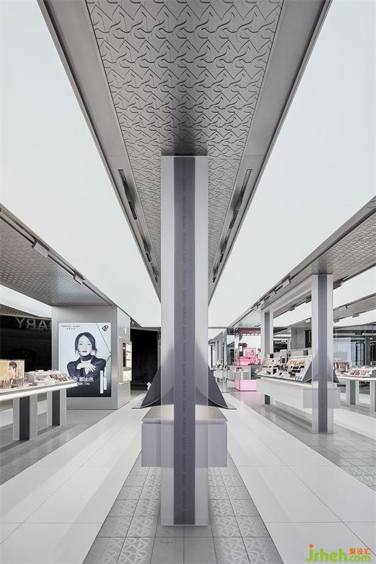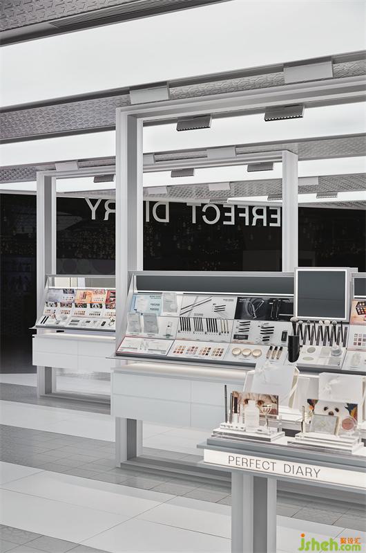體驗(yàn)店設(shè)計(jì)以輕盈通透的貨架承載產(chǎn)品展示作為空間主要元素,通過有序的排列,串聯(lián)起各個(gè)區(qū)塊,讓消費(fèi)者的視覺和體驗(yàn)更加聚焦在琳瑯滿目的美妝產(chǎn)品上,更賦予了消費(fèi)者自發(fā)探索和無拘束的購物體驗(yàn)。