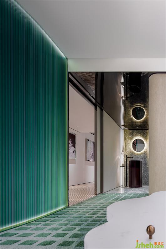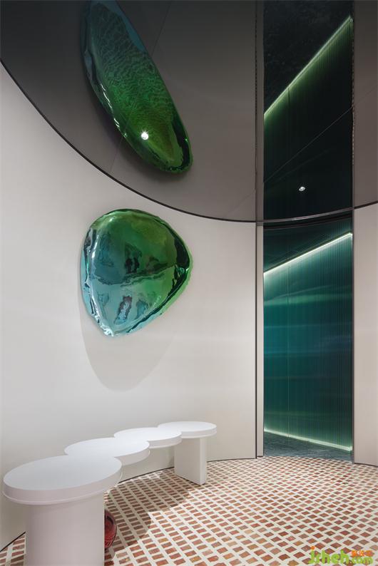 三層空間承載燕窩品鑒和聚會功能,在白里透紅的底色上引入亮眼的墨綠,帶來不一樣的空間印記。