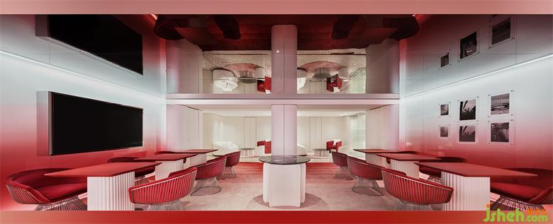 旗艦店設(shè)計(jì)師在VIP區(qū)墻面設(shè)置開(kāi)窗,巧妙地利用外立面的玻璃幕墻與內(nèi)部開(kāi)窗的關(guān)系,引入自然光線,玻璃隔斷隱喻燕窩晶瑩剔透、富有顆粒感的肌理,共同形成一個(gè)半圍合空間,給人舒適的愉悅感。