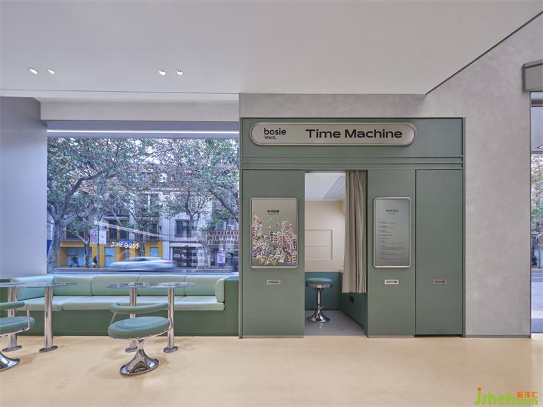 一層空間引入服飾區(qū)、零食區(qū)、冰淇凌區(qū)以及復(fù)古拍照區(qū),作為零售終端中必不可少的功能業(yè)態(tài)被賦予鮮明的社交屬性和奇幻感,體驗和購買的邊緣性被模糊,甚至發(fā)生了扭曲重合。探險者們也早已將自己代入到時空旅行的角色當中,對未知之域充滿了好奇和探索的欲望。