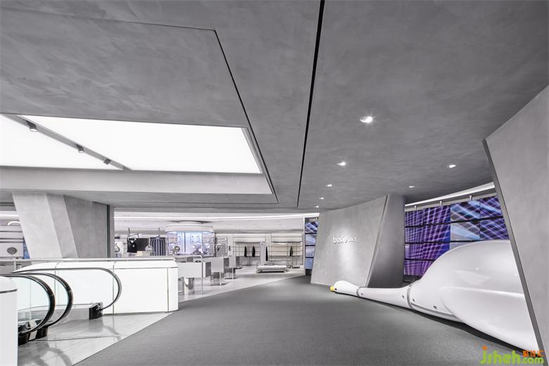二層空間對應(yīng)故事腳本中的飛船本體,立品將這個空間設(shè)定為bosie實施重返星球計劃的重要實驗基地,將實驗室的場景與業(yè)態(tài)有機結(jié)合。圍繞中空區(qū)域,二層天花設(shè)置環(huán)形燈帶,模擬飛船內(nèi)部的科技感并引導(dǎo)探險者環(huán)繞前行。