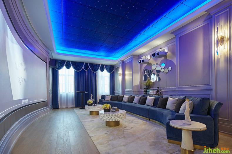衛(wèi)生間區(qū)域以小顆粒馬賽克拼貼而成的藍(lán)色Jackson為背景墻,讓該停留區(qū)域充滿著爵士舞般的浪漫生活情懷。