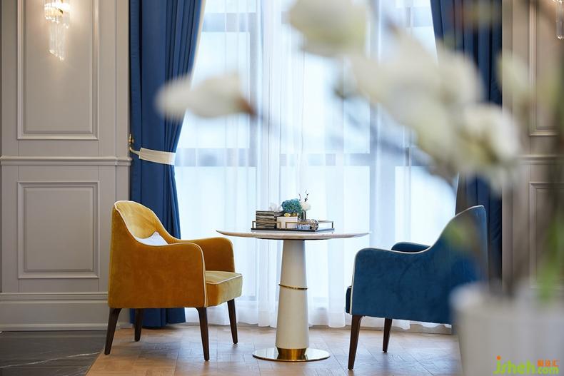 空間在冷暖色調(diào)上注重調(diào)和效果,使得空間主次分明、重點突出,在最大程度上做到軟硬裝結(jié)合,充分考慮到色彩之間的調(diào)和,營造出空間時尚大方的氛圍之時,無處不在滲透出法式浪漫氣息。