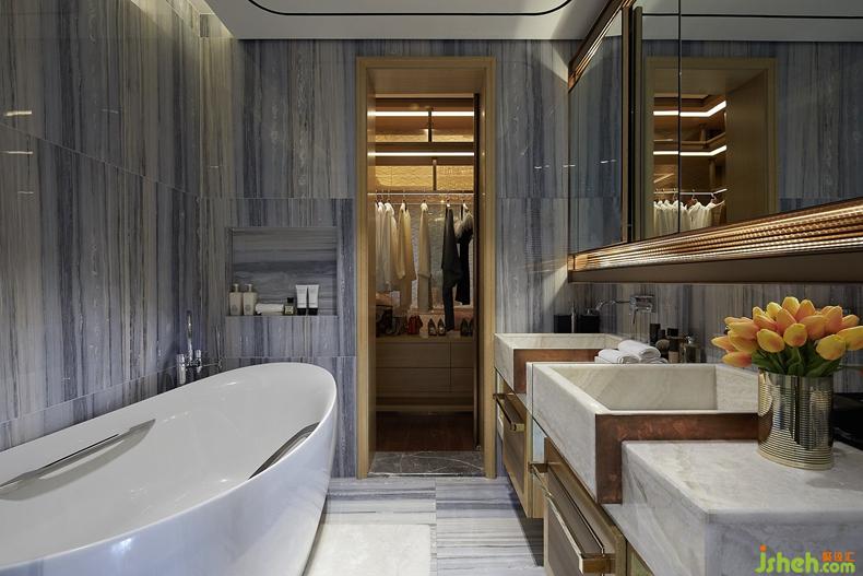 衣帽間擺放著從不同地方淘回的高品質(zhì)衣物及擺飾品,時尚的裝飾融入多元化的現(xiàn)代元素,打造出簡練內(nèi)斂卻不失豪華大氣的空間。