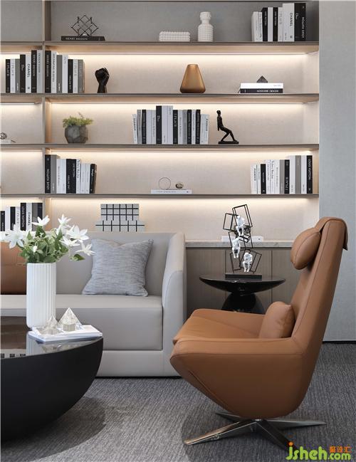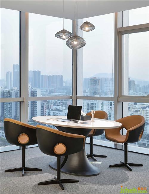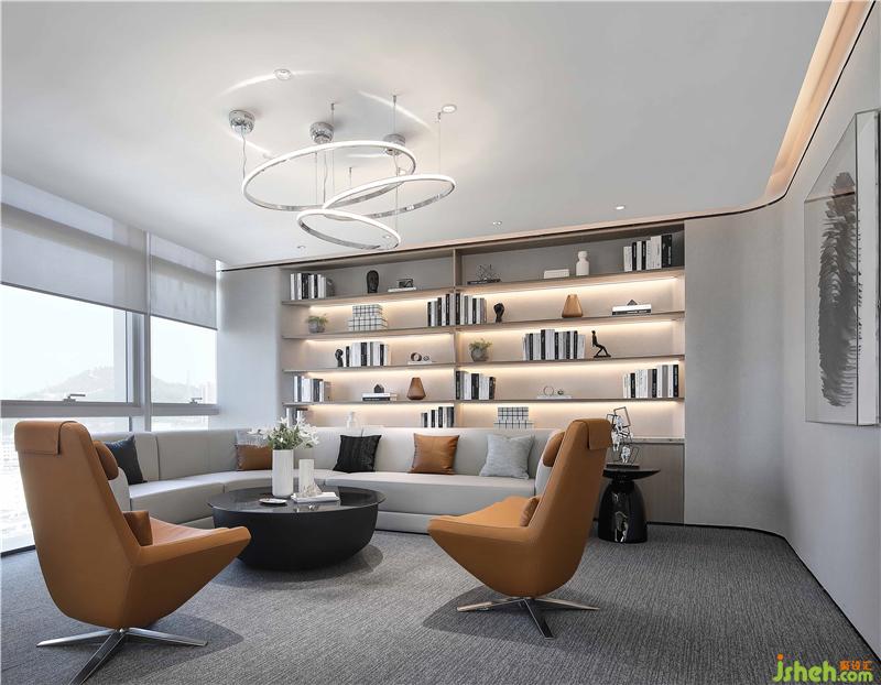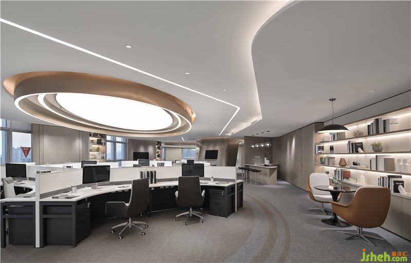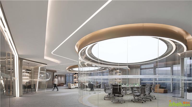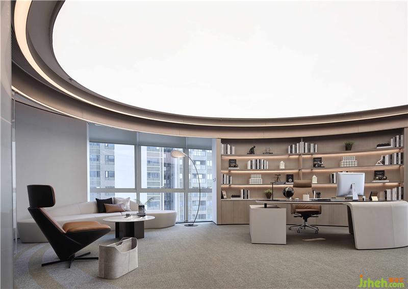 曲線與幾何在空間共存,線條的形式感使辦公室充滿現(xiàn)代化與品質(zhì)感,在視覺與使用上滿足辦公人群的情感訴求,構(gòu)建人的第一感性認(rèn)知。辦公室設(shè)計(jì)