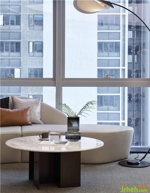 茶色花藝、麻繩編織球與進(jìn)口GEORG JENSEN小不銹鋼托具的組合,倒映在MINOTTI灰色鋼化玻璃臺(tái)面上,頗有種置于水面“瀲滟晴光好”的自然浪漫情調(diào),不經(jīng)意間流露出濃郁的藝術(shù)人文與雕塑形體之美。