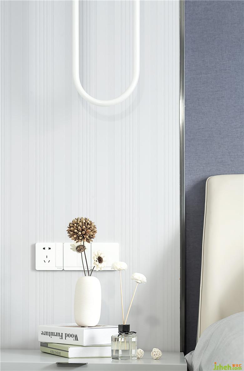 次臥:細(xì)密豎紋墻紙,尖錐型吊燈,包括床品,花瓶的紋路。室內(nèi)設(shè)計(jì)師處處都將線條的延伸感凸顯得淋漓盡致!整體顯得整潔而又高挑!