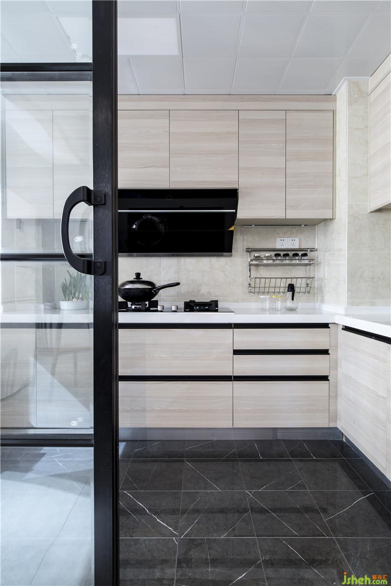 廚房雖然不豪奢,但是功能全面,簡單干凈。淺淺的木紋,能給人暖暖的味道。