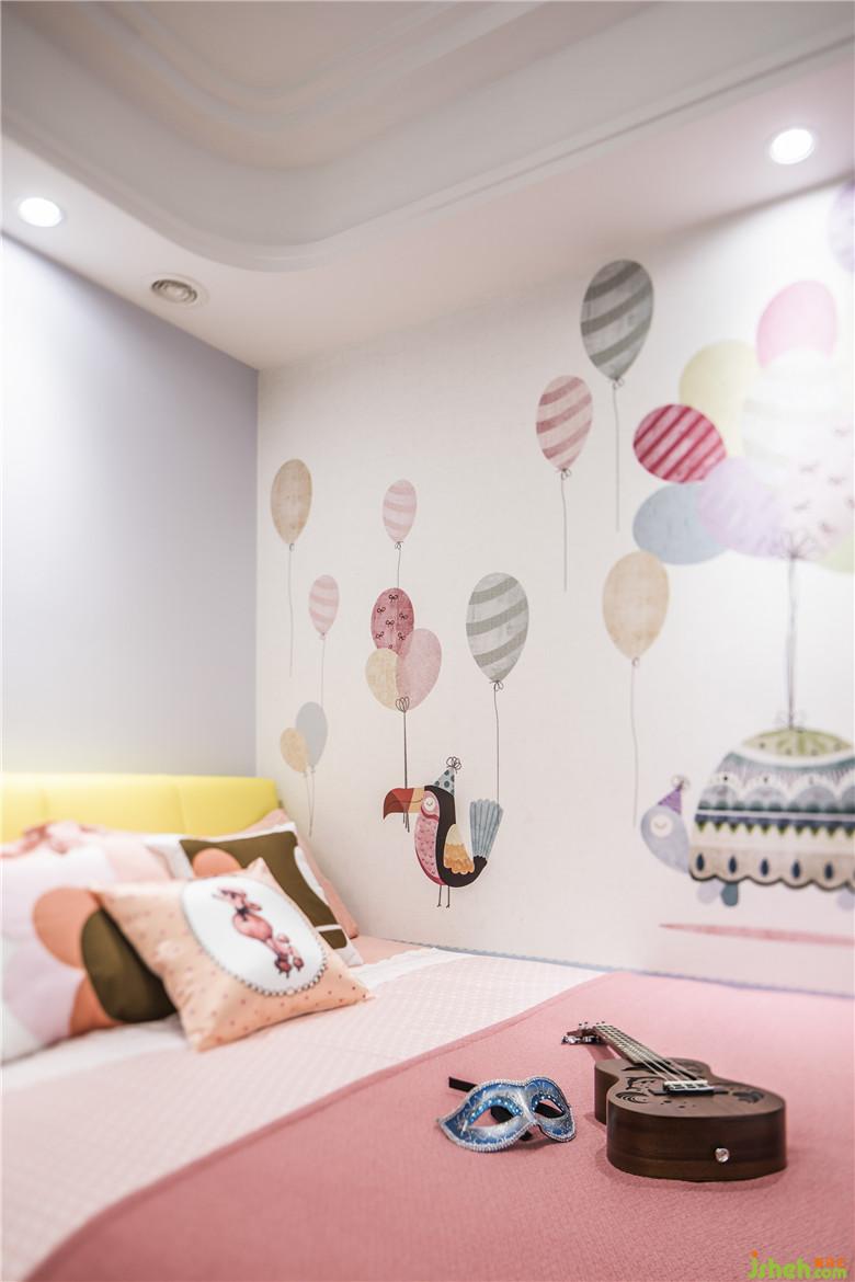 兒童房以清新的粉綠色與粉紅色的搭配來凸顯空間氛圍甜美與可愛,隨處可見的動(dòng)物元素和氣球、城堡,為孩子構(gòu)建了一個(gè)童真童趣的空間。