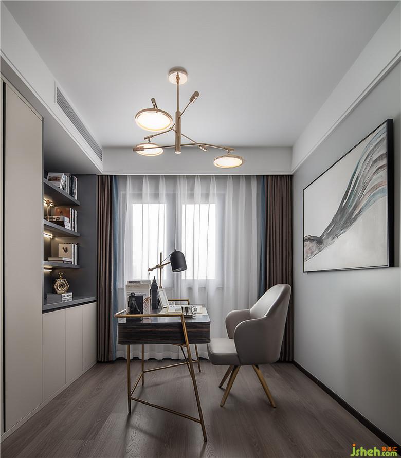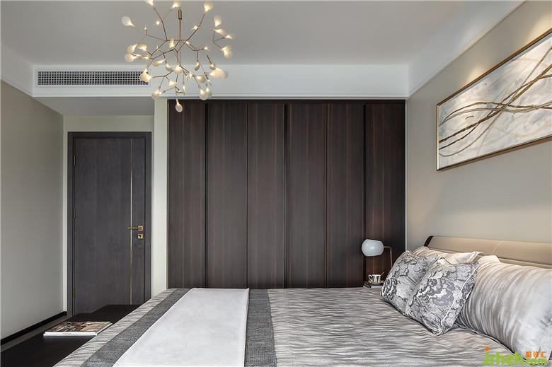 主臥,室內(nèi)設(shè)計師床頭硬包的使用仿佛深秋的大衣一樣給人以溫暖和安全?;鸩耦^狀的吊燈,更是提高了臥室的溫度。臺燈的造型也是跟吊燈相呼應,顯出了幾分可愛。配色雖然偏沉穩(wěn),卻不讓人壓抑。就像中年的人,穩(wěn)重了,周全了,卻還有自己的夢想和感情的回轉(zhuǎn)。