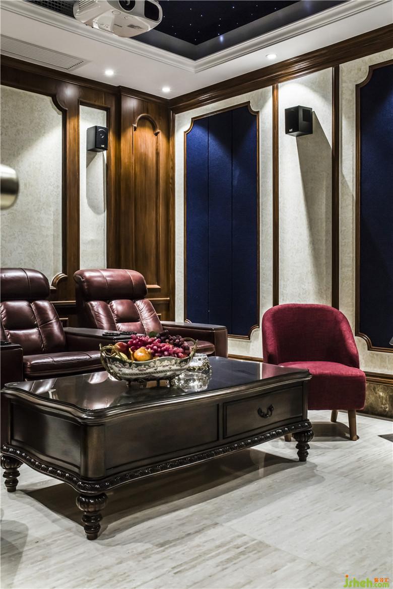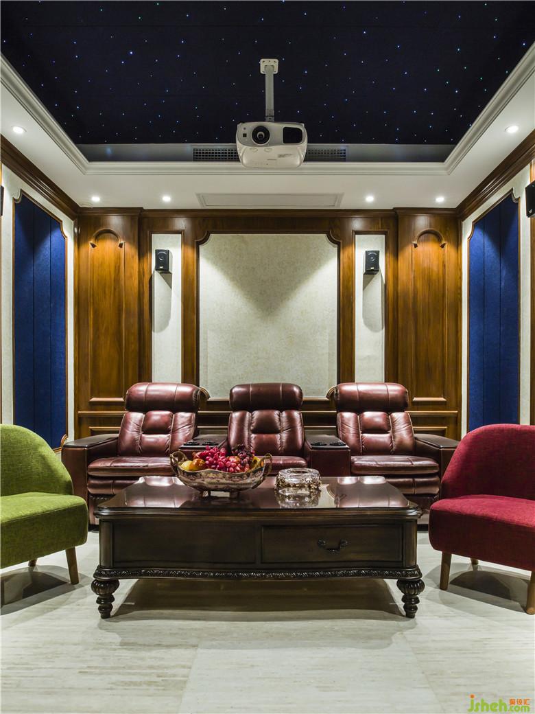 多功能視聽室拋棄常規(guī)的沉悶,裝飾部分別具一格,延續(xù)整體家居風(fēng)格,但在色彩上跳躍活力,星空頂與墻面聲學(xué)功能材質(zhì)完美結(jié)合。