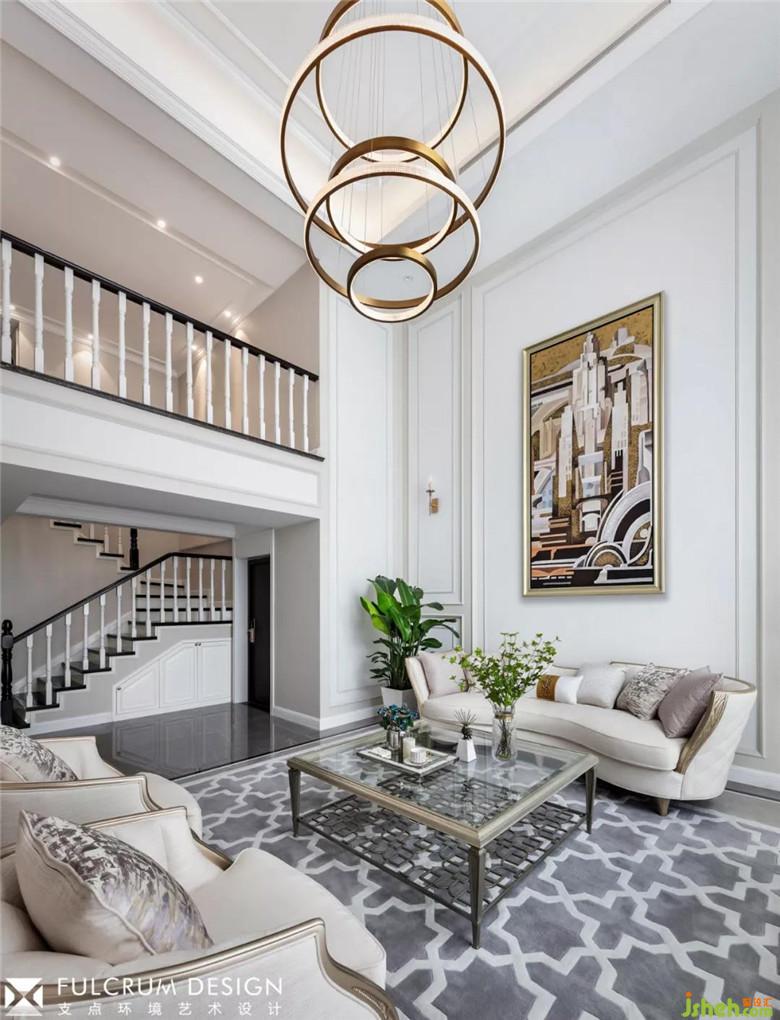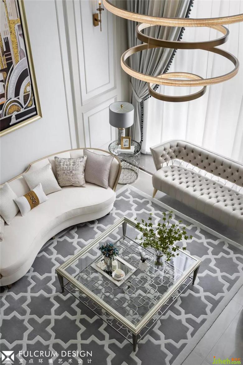 5米多層高的挑高客廳,大面積落地窗引入雙倍自然光,整個空間更顯開闊疏朗。中性的沙色系墻面與地面低調(diào)內(nèi)斂的灰色系的搭配相得益彰,散發(fā)著一種靜謐的味道;隨著線條的鑲嵌,中性色調(diào)的色彩深淺疊加,加深空間層次和細(xì)節(jié),精致的家具點綴其中,一針一線,一珠一紋,無不透露著精致;仿佛芭蕾,輕輕一點,卻見功力!