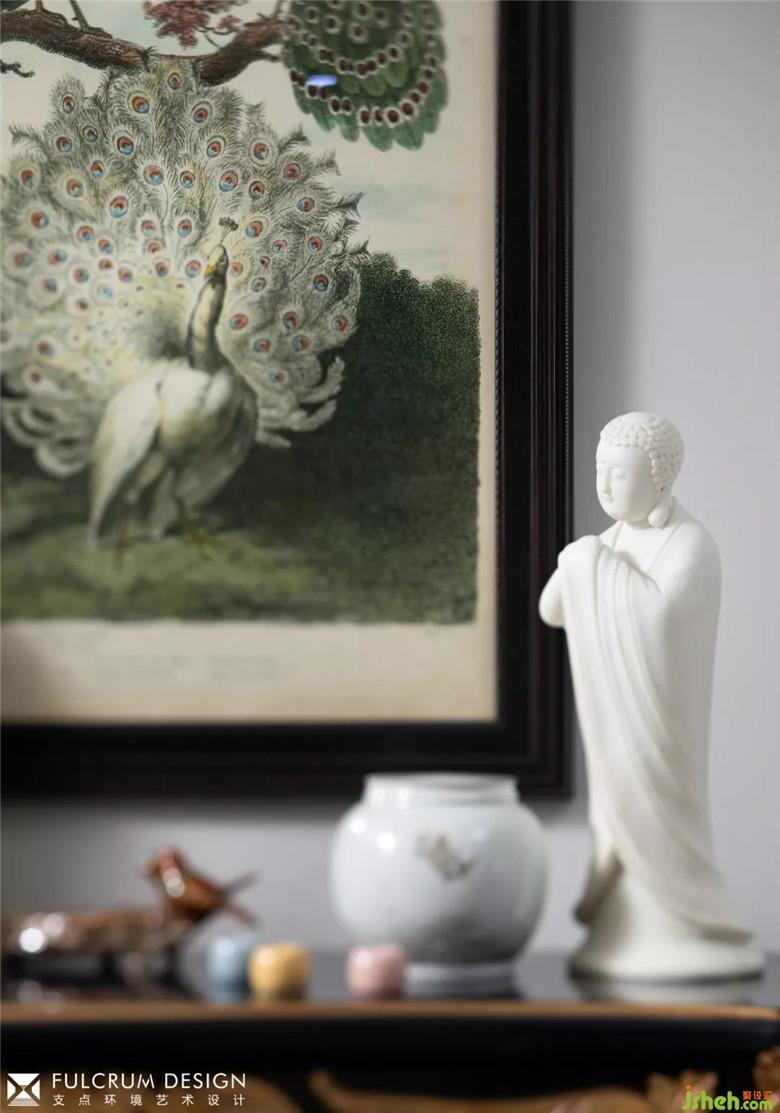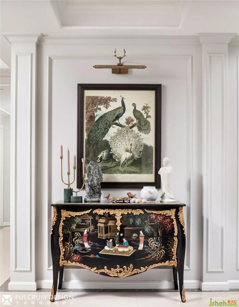 整體美式的框架下,帶有濃郁的東方色彩的斗柜和飾品讓人眼睛一亮,東西方風格的對撞反而帶來別樣的風味。