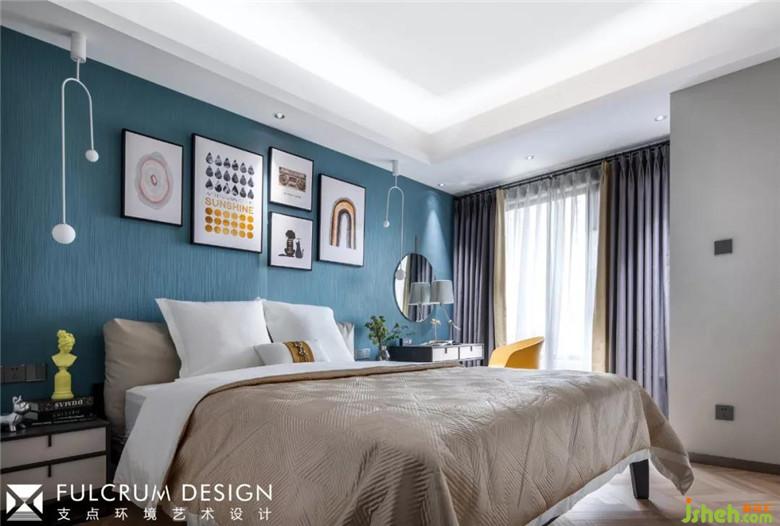 當光線透過白紗的時候,臥室那低沉的灰藍也顯得無比溫暖。