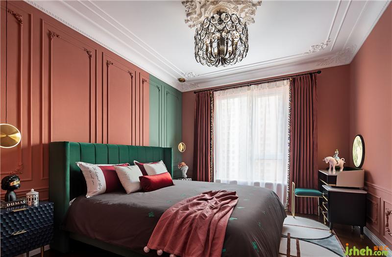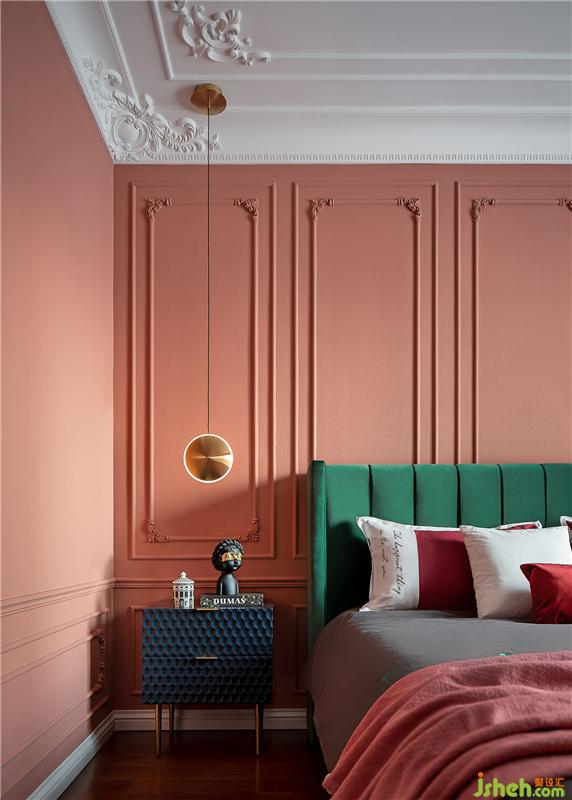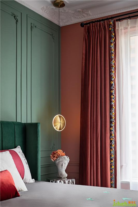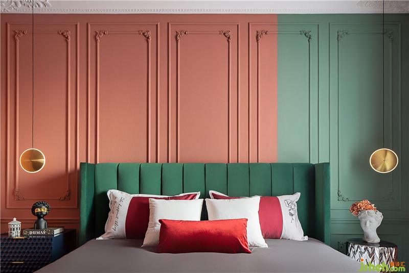 ▲臥室——家庭中最為私密的空間,這里使用低飽和度的紅與綠組合,感覺舒適和私密。創(chuàng)造一個充滿活力和放松情緒的臥室,可以讓人忘卻煩擾,每個夜晚擁有美好的心情入眠。