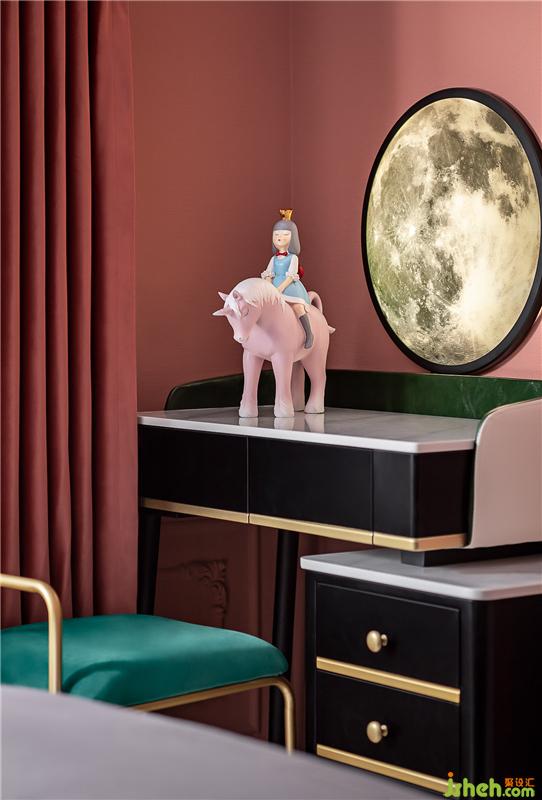 ▲人類關(guān)于詩意最美麗浪漫的想象大多與月亮有關(guān),梳妝臺上方懸掛著一個高顏值的梳妝鏡,在開燈狀態(tài)下,會變成一輪溫柔的滿月,引人遐想。