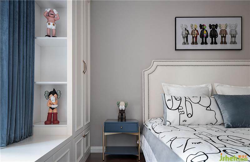 ▲在這間中性色調(diào)裝飾的臥室里,抽象的床品,獨(dú)特的裝飾畫與雕塑品使得這個空間同樣充滿趣味性。
