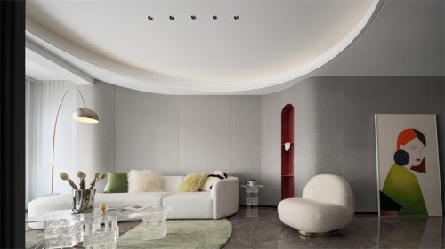 同時(shí)將客廳和餐廳之間用了弧形墻面隔開(kāi),