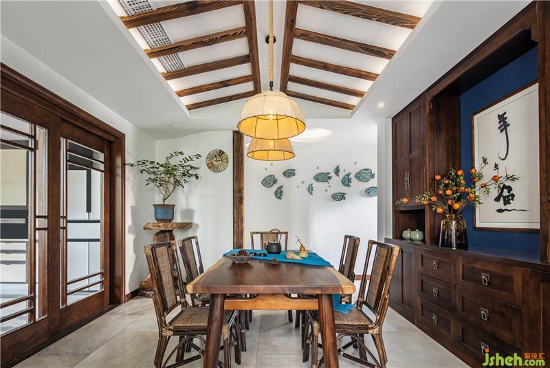 墻上有魚,頂上有荷,屋外有塘。