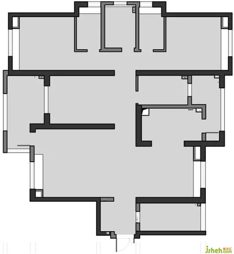 承重墻很多,戶型改動性不大,玄關處的儲物空間少,不足業(yè)主一家三口的玄關需求,飄窗多,考慮利用方式。