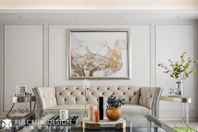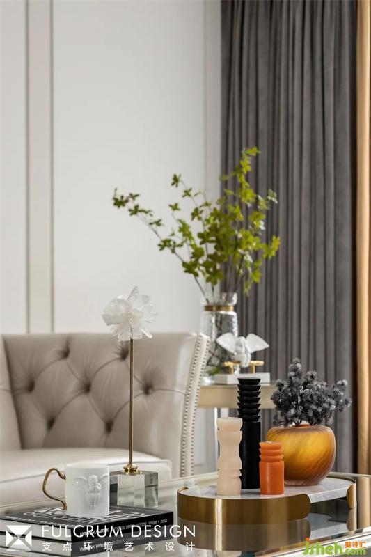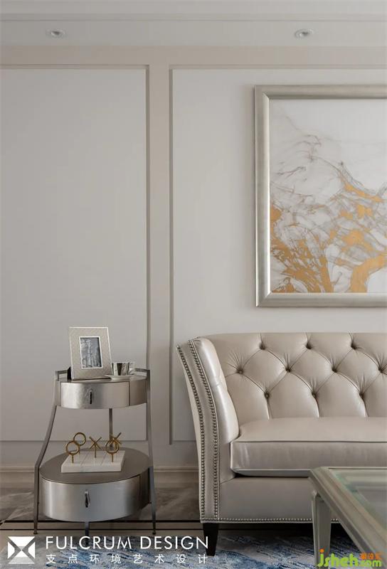 初入眼簾,走道近11米的進深,客餐廳近11米的開間,開闊的尺度感是每個舒適的家居空間必須體現(xiàn)的,無縫拼接的灰色大理石地磚,展現(xiàn)肌理美與精湛的鋪貼工藝,奶白色充斥整個空間,顯得明亮溫暖,用金屬邊框勾勒出一個精致的基調,皮質家具是永恒的儀式感扮演者,任憑生活充滿雞毛,也要有腔調的生活。