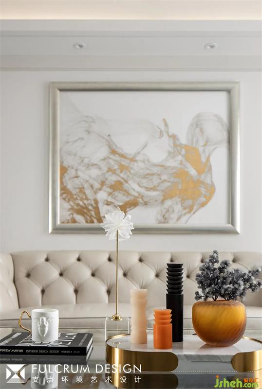 對稱在古今中外都是最有儀式感的造型手法,壁燈以對稱的形式點綴背景墻出現在這個家的許多空間,旨在給予業(yè)主一家更有儀式感的生活氛圍。